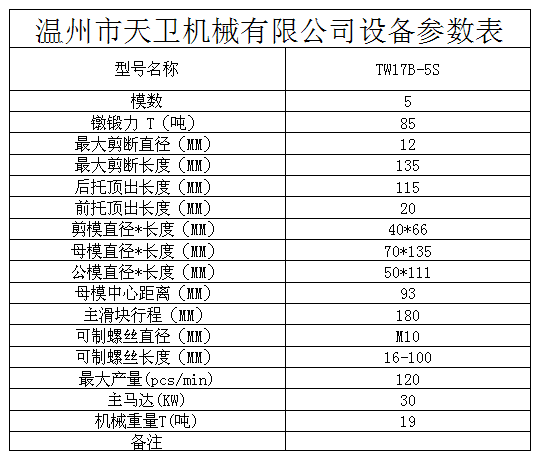 Current location:Home  / Products  / Five die five punch multi station cold heading machine  / └ TW17B(M10) / TW17B-5S full-automatic multi station cold heading machine
