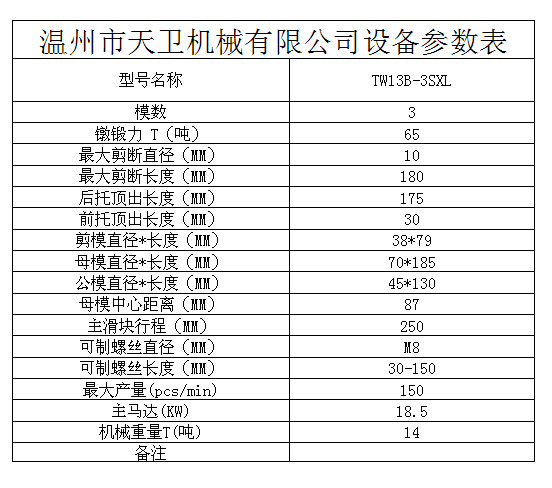 您當前的位置:首頁 / 產品中心 / 三模三沖冷鐓機 / └ TW13B(M8)多工位冷鐓機 / TW13B-3SXL全自動多工位冷鐓機